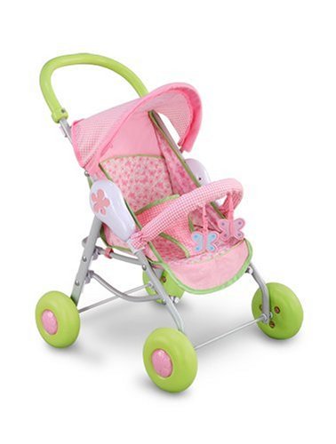 New and ready to ship Ships fast with tracking number and signature confirmationPlease review our policies before ordering Comes complete with a toy bar featuring butterfly toys and a canopy The pretty stroller in pastel pink butterflies and gingham Balloon tires provide effortless maneuverabil Read More..