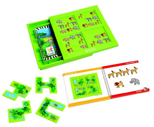 SG 101 Features -Hide and Seek Safari game-Choose a challenge from the game guide and place it beside the game board-Arrange the four puzzle pieces on the game board so that all the animals are covered except the ones pictured on the challenge-Unique logical mind-challenging game for all ages P Read More..
